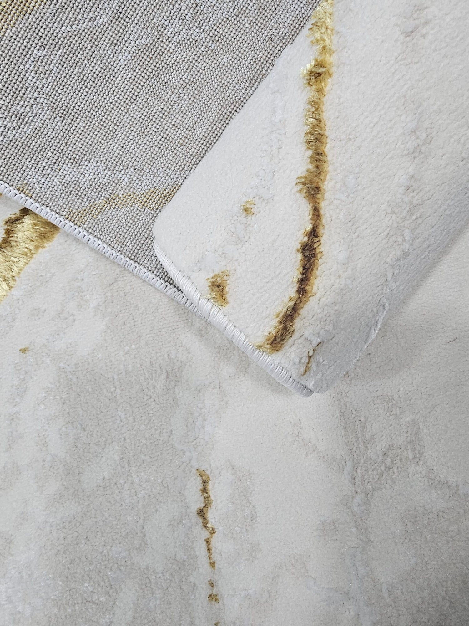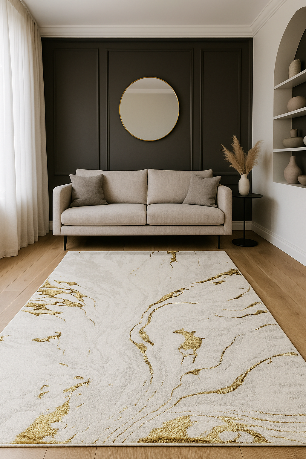Agrega sofisticación instantánea a tus espacios con la Alfombra Turca La Joya – SHIRAZ, una pieza inspirada en el estilo mármol con vetas doradas que aportan lujo, arte y modernidad. Su diseño minimalista en tonos beige y gris claro combina con salas modernas, dormitorios elegantes y oficinas contemporáneas.