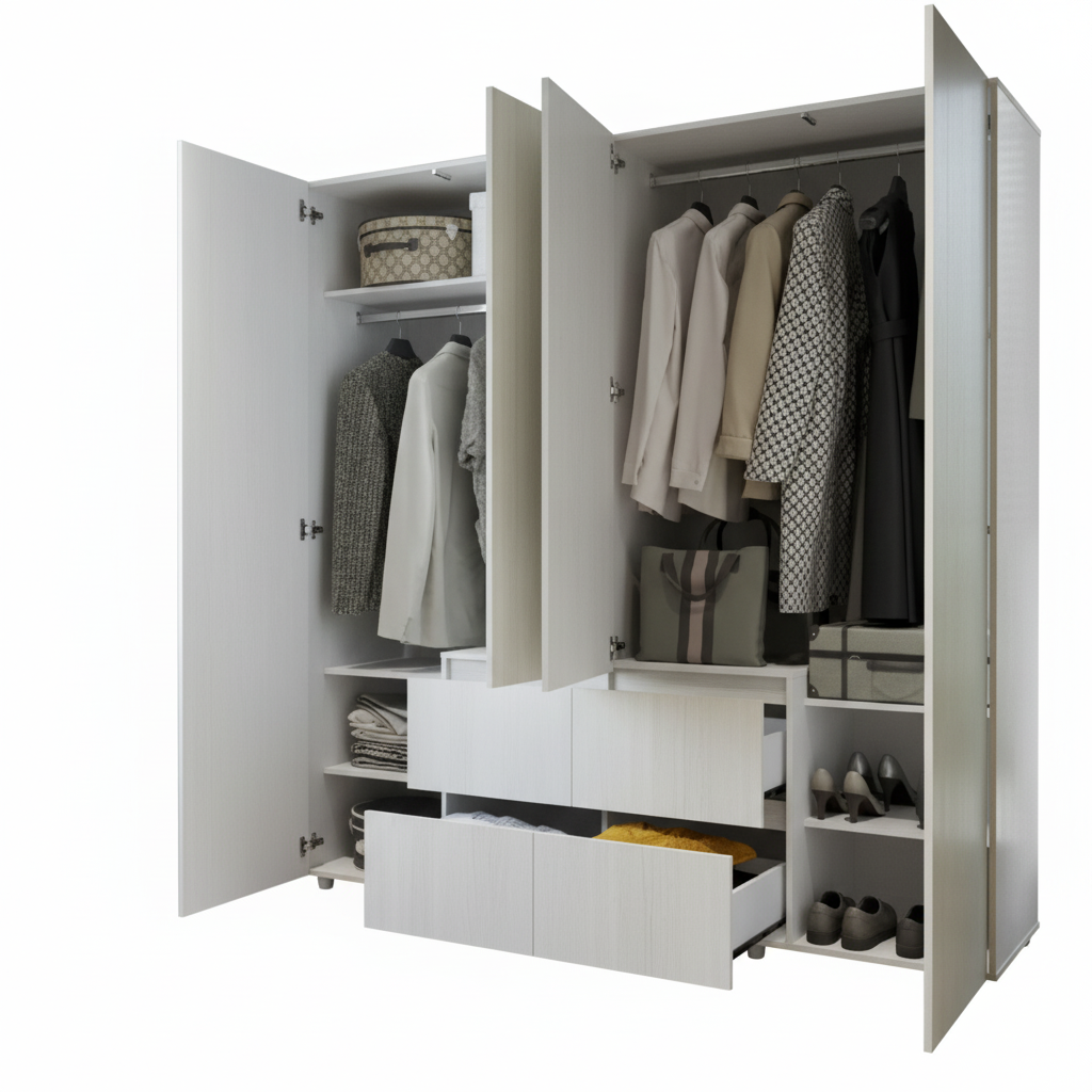 Con un diseño moderno en melamina texturizada, amplio espejo integrado y distribución inteligente de almacenamiento, este ropero ofrece funcionalidad, elegancia y durabilidad en un solo mueble.