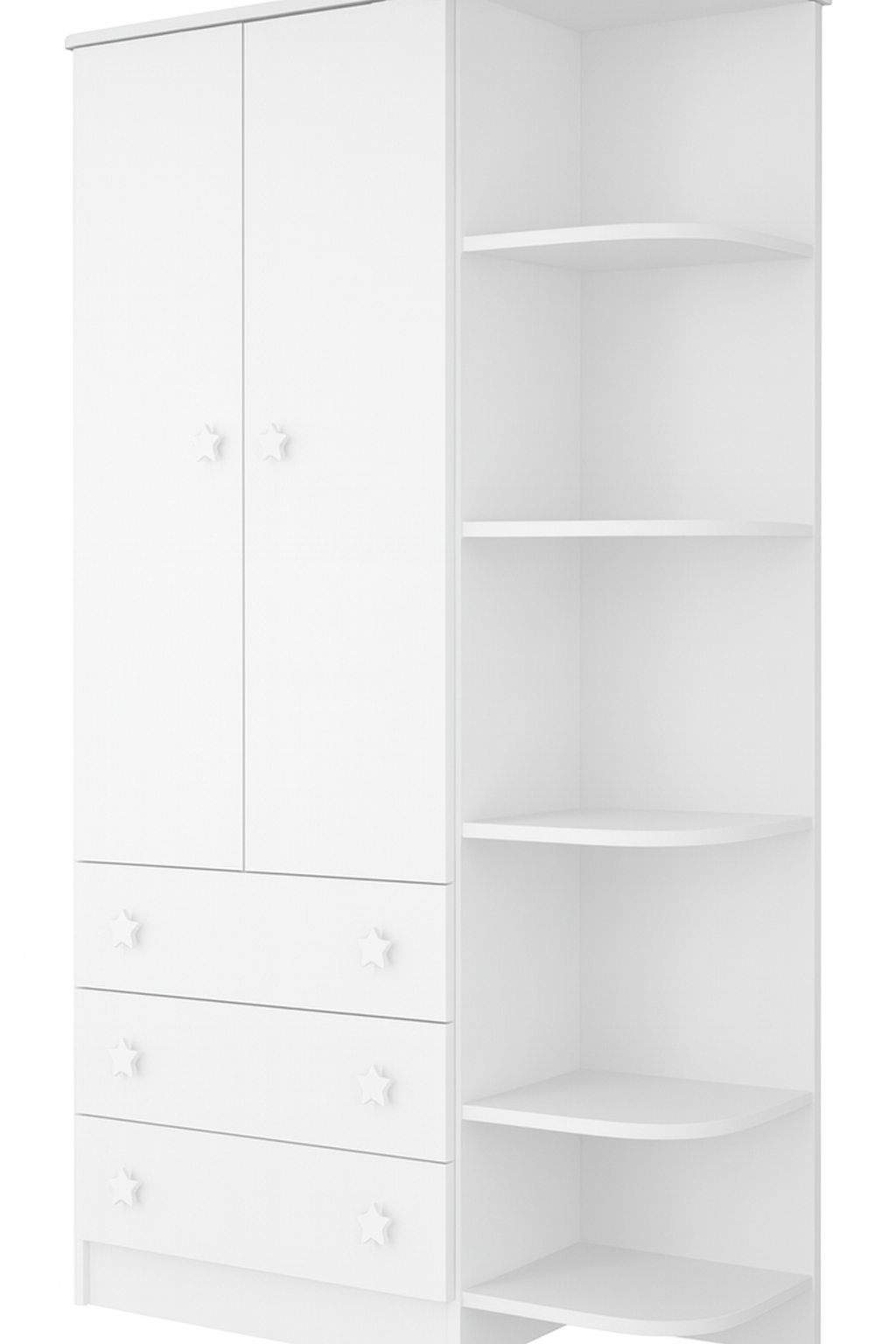Le presentamos un clóset diseñado especialmente para brindar orden, funcionalidad y encanto en el dormitorio infantil. Fabricado en melamina blanca de alta resistencia, este mueble combina líneas suaves, repisas curvas y cajones amplios que facilitan la organización diaria, manteniendo siempre un estilo moderno y tierno.