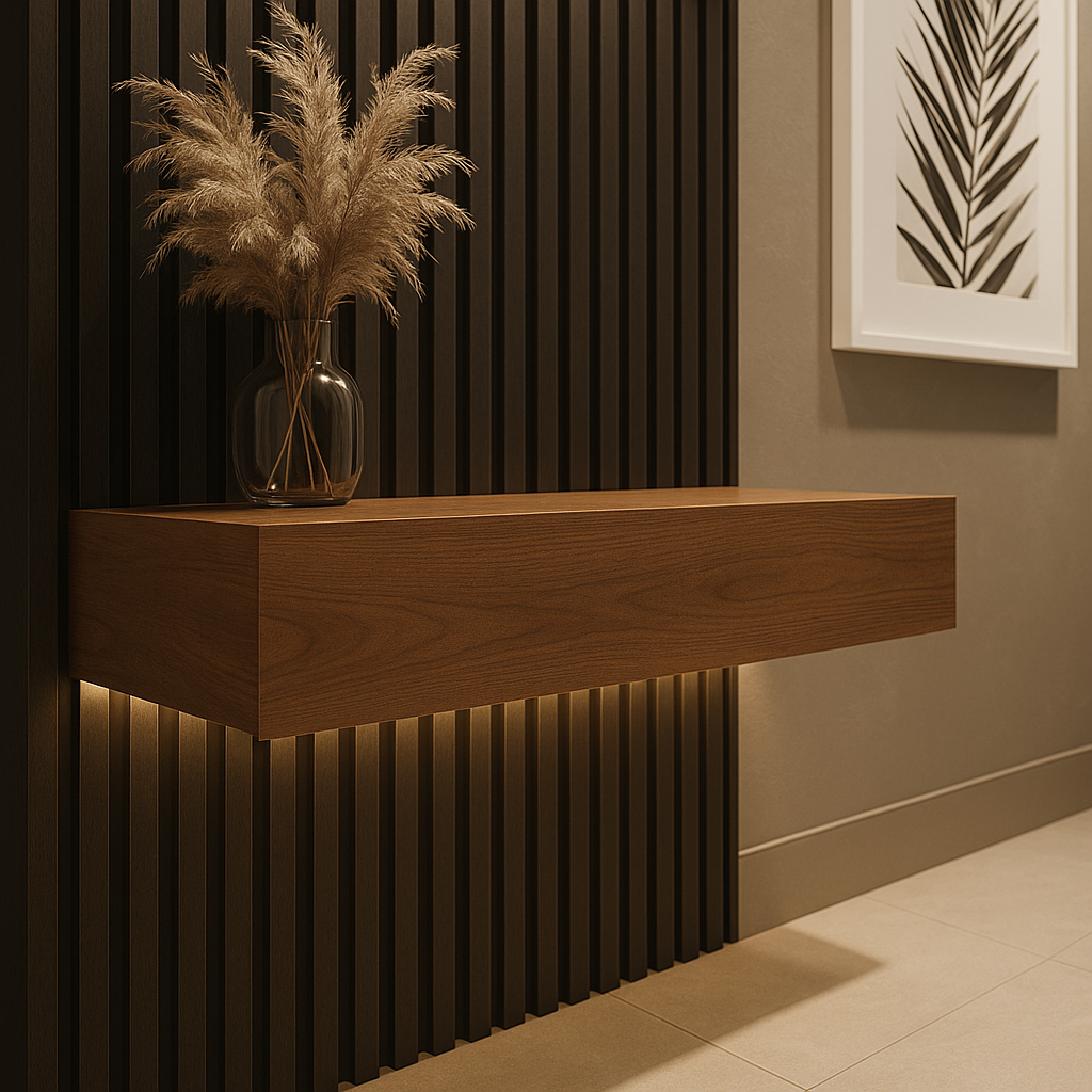Dale la bienvenida a la elegancia con nuestro recibidor ARENA minimalista en melamina color Toquilla, una pieza que combina diseño contemporáneo y funcionalidad. Su estructura suspendida crea un efecto visual ligero y moderno, ideal para entradas o pasillos.