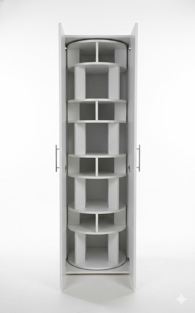 La Zapatera giratorio ARIEL, mantén tus zapatos siempre ordenados y al alcance de la mano con este zapatero giratorio de 360 grados, diseñado para optimizar el espacio y añadir un toque moderno a tu hogar.