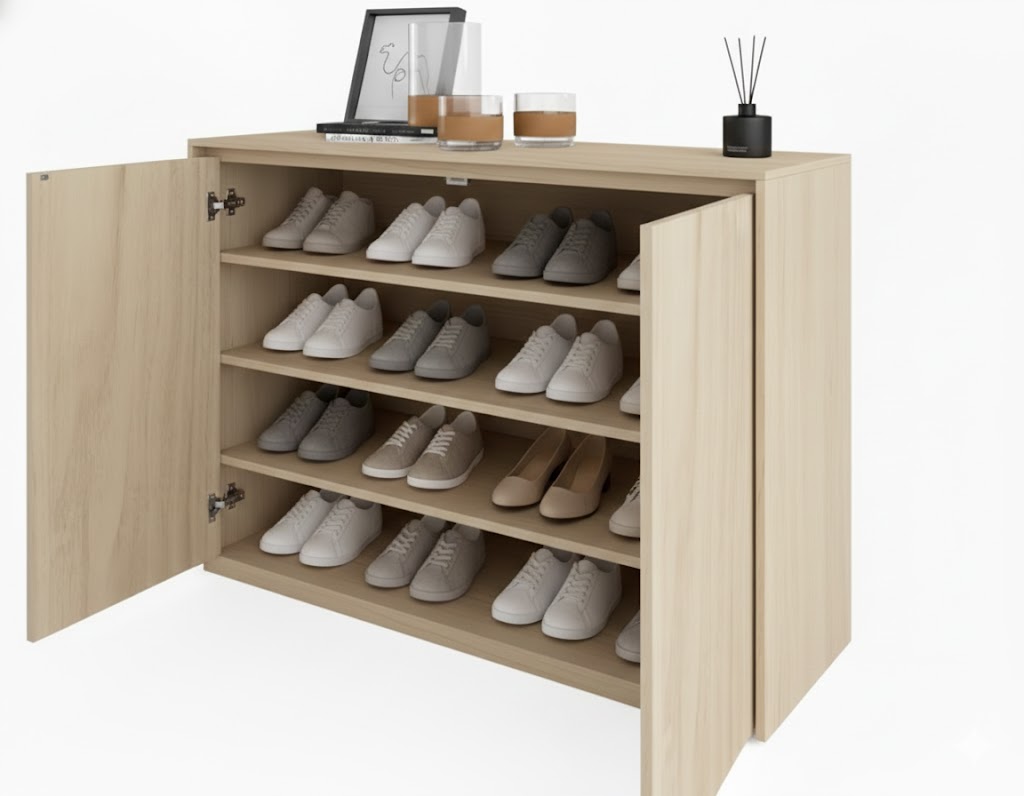 La Zapatera Inkairus es un mueble diseñado para mantener tus espacios ordenados sin ocupar demasiado lugar. Su estructura compacta y moderna permite almacenar hasta 18 pares de zapatos, manteniéndolos protegidos, organizados y siempre al alcance.