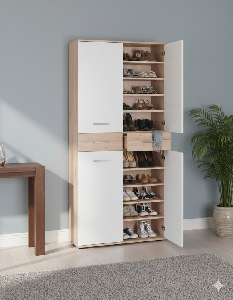 La Zapatera JASMIN es la solución perfecta para mantener tu hogar ordenado con diseño moderno y funcional. Con capacidad aproximada para hasta 40 pares de zapatos, este mueble combina practicidad y estética en un solo producto.